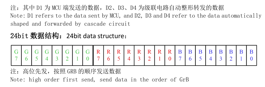注意,这款彩灯的颜色是通过这样一组数据包发送的,数字大小代表有多亮