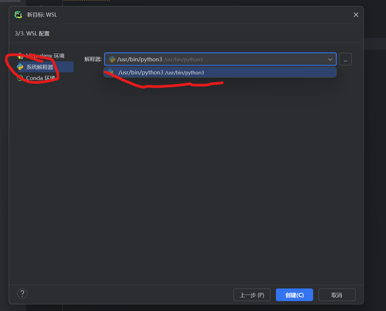 选择wsl