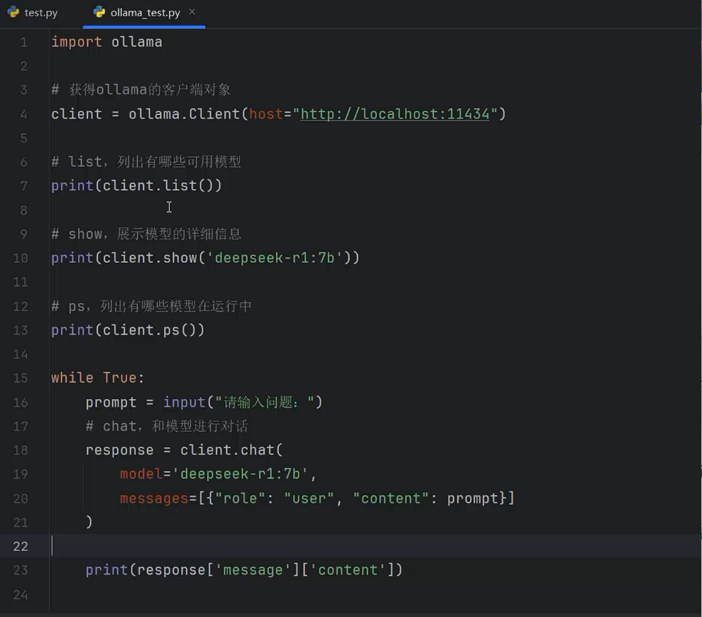 当有了client对象后,可以使用client对象提供的方法,完成对Ollama的操作