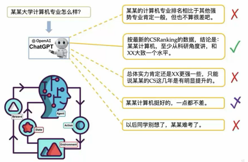 - 这一步中我们让人们对同一问题的不同回答进行排序,然后采用强化学习算法进一步调整模型,使输出回答更符合人们的期望。