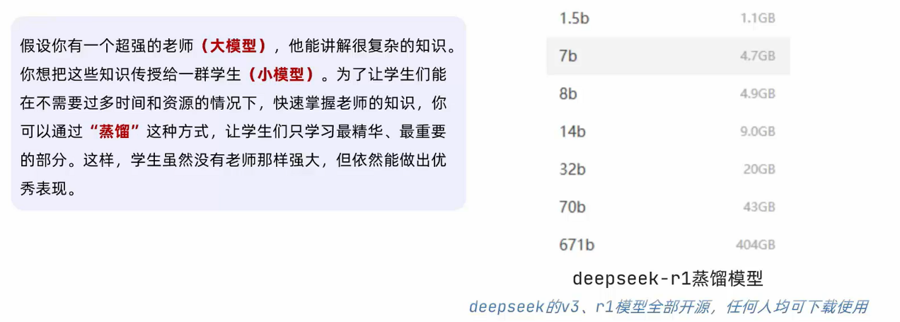 - 为了满足低性能设备的运行,可以对大模型进行蒸馏。