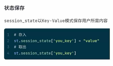 session_state是一个字典, 基于Key-Value形式,可以保存任意用户所需的内容