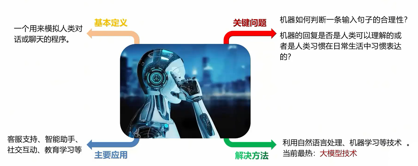 - 本次课我们会带领大家完成从0-1的聊天机器人搭建。
