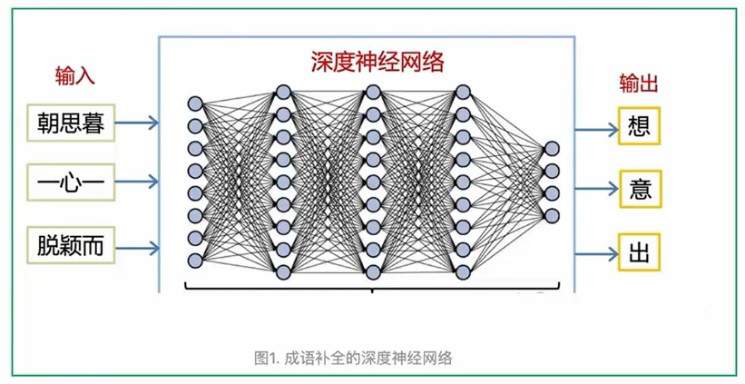 - 比如: 我们可以用它玩成语补全的游戏,输入成语的前三个字,让网络输出最后一个字(见图1)。