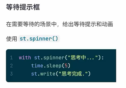 # 首先将用户的提问在页面输出 st.chat_message("user").write(prompt) # 把用户提问这个对话保存到session_state内 st.session_state["message"].append({"role": "user", "content": prompt}) # 调用AI回答 with st.spinner("正在思考中..."): # 转圈圈的加载框 res = utils.get_response(prompt) # 将AI回答信息写到屏幕上 st.chat_message("assistant").write(res) # 将AI回答的消息记录到session_state内 st.session_state["message"].append({"role": "assistant", "content": res})