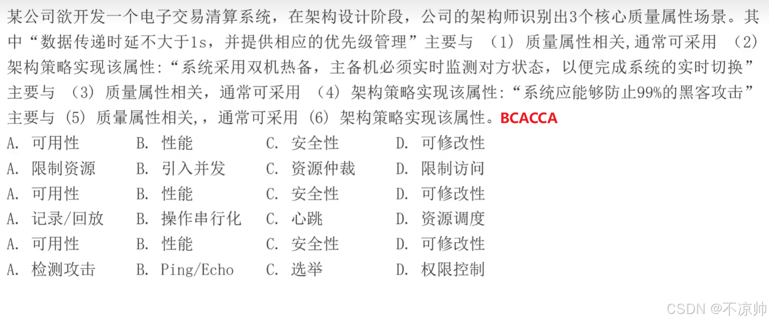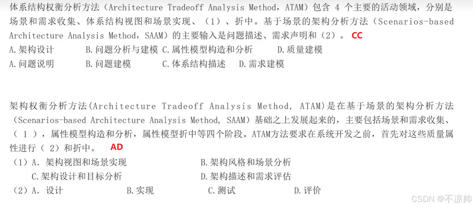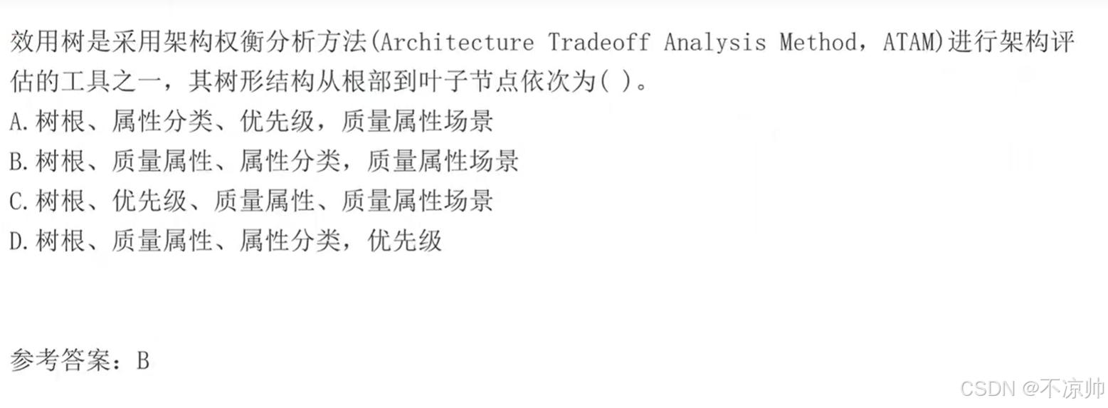 ②架构权衡分析法-ATAM方法:由SAAM发展而来,主要针对性能、实用性、安全性、可修改性。