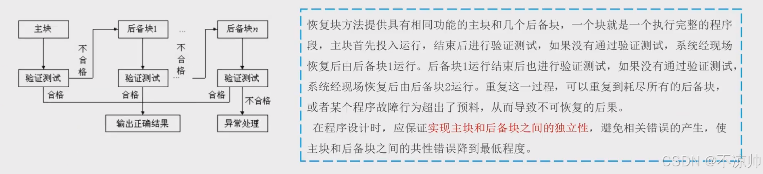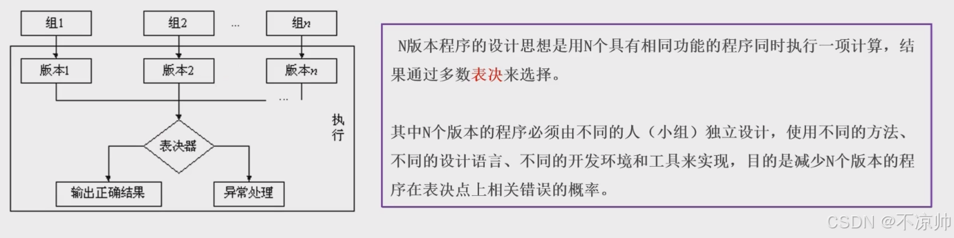 ①N版本程序设计:N版本程序设计是一种静态的故障屏蔽技术,采用前向恢复的策略。