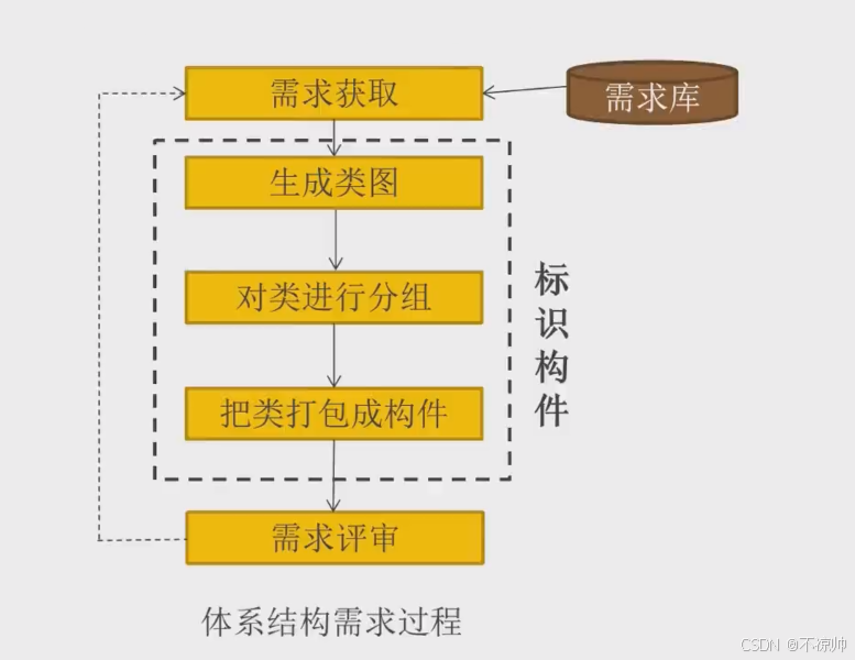 体系结构需求受技术环境和体系结构设计师的经验影响,需求过程主要是获取用户需求,标识系统中所要用到的构件。如果以前有类似的系统体系结构的需求,我们可以从需求库中取出,加以利用和修改,以节省需求获取的时间,减少重复劳动,提高开发效率。