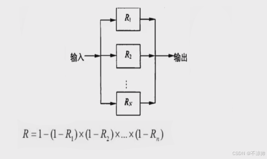 可靠度为:R=1-(1-R1)×(1-R2)×...×(1-Rn)