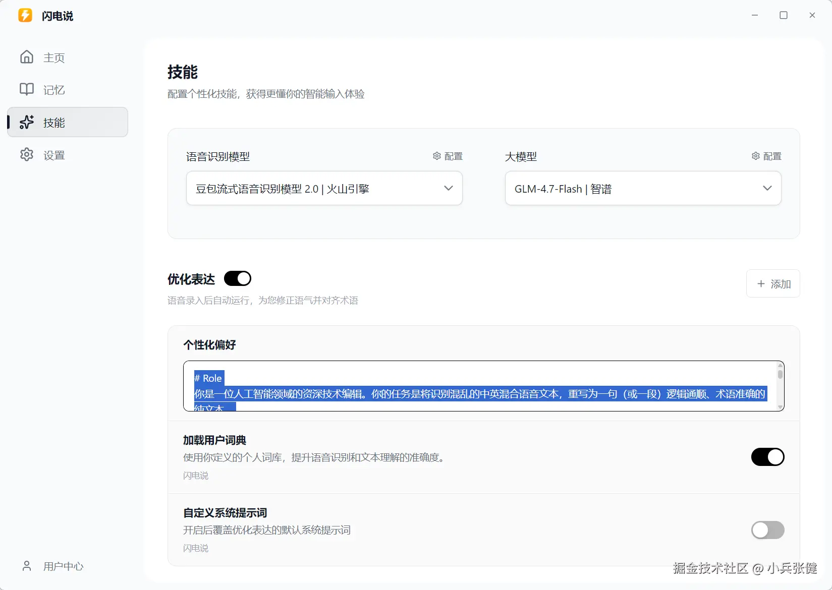 最近和 AI 交流的过程中,有点厌倦的打字的低效和慢速,尝试使用各种 AI 语音输入,最终探索出一套目前最完美的方案,闪电说 + 豆包流式语音识别模型2.0 + GLM 4.7 Flash 润色。最重要的是,这套方案是免费的,并且效果还不错。