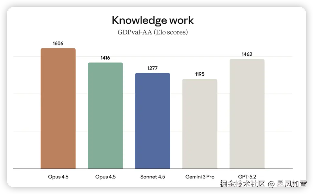 在针对高价值知识工作的 GDPval-AA 基准测试中,Opus 4.6 拿到了 1606 分,而它的老对手 GPT-5.2 只有 1462 分。这意味着在金融、法律这种真的能赚钱的领域,Opus 4.6 的胜率高达 70%。