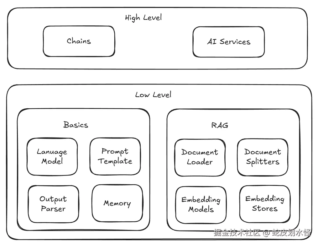 LangChain4J的架构可以分为两层,分别为高层和底层。