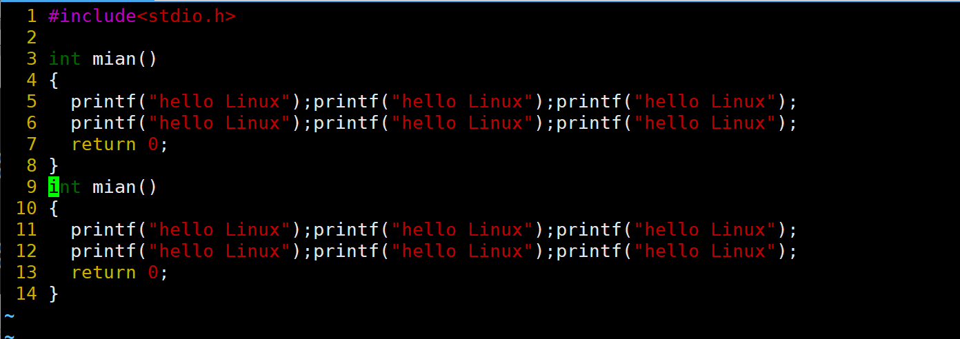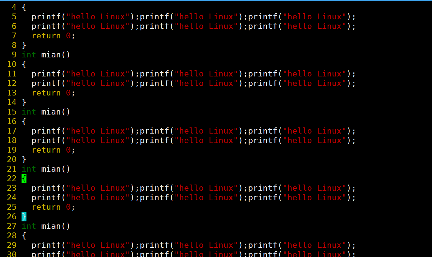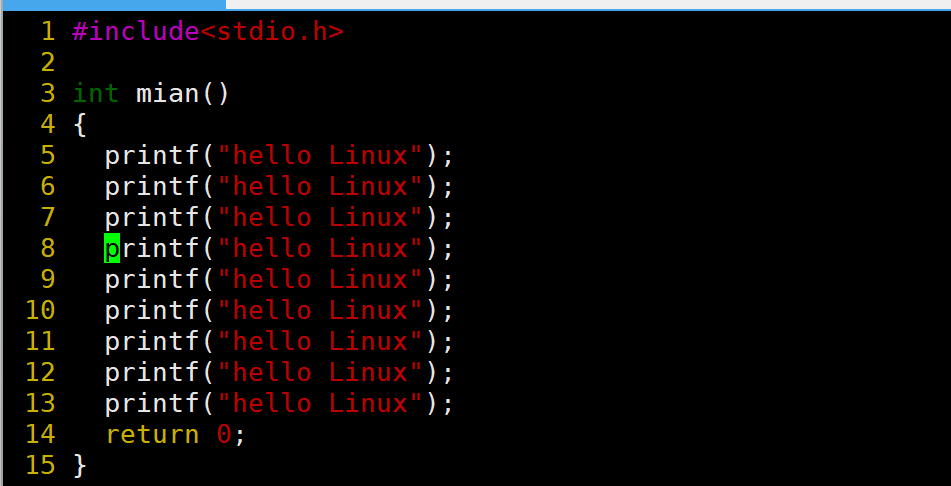现在光标成功的移动到了末尾行,那现在想要回到首行就可以输入gg。移动效果如下图: