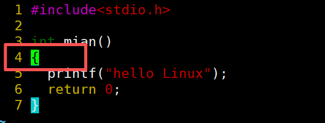 现在已经能使光标移动到首、尾行。如果现在想让光标移动到第4行就可以先输入4 再输入gg就可以移动到第4行,移动效果如下图:
