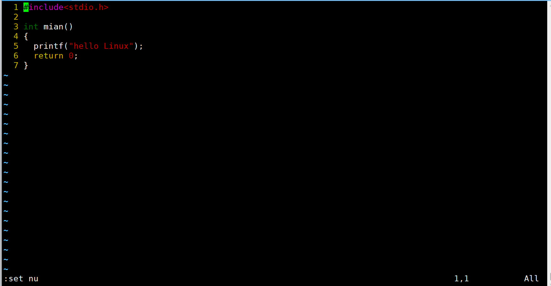 set nu显示行号