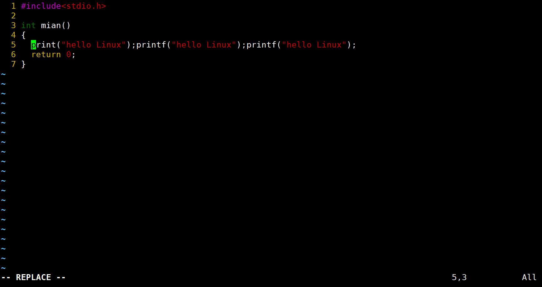 在替换模式下就可以输入内容,输入的内容会替换掉当前光标所在位置的内容