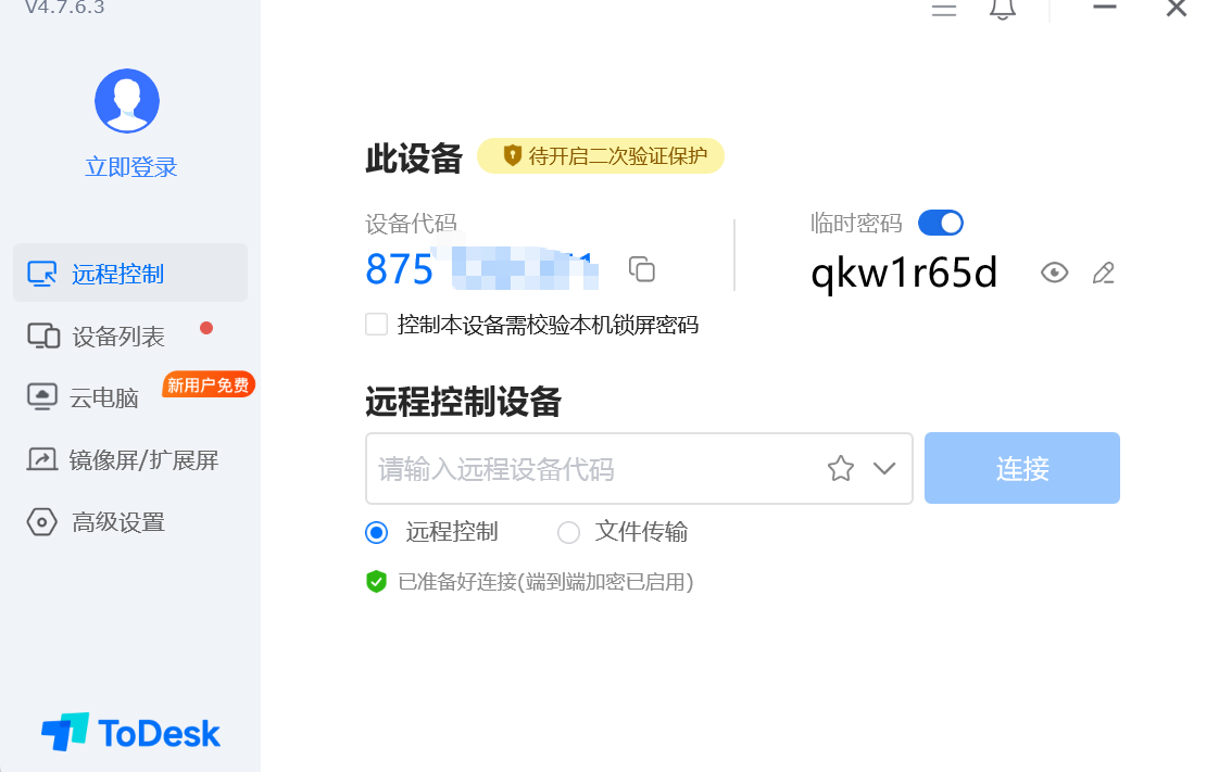 ToDesk :非常的保障客户的隐私,给足了安全感,采用独立双重验证机制 ,要输入远程设备的设备代码以及临时密码,但日常办公迅速便捷的人并不觉得高效