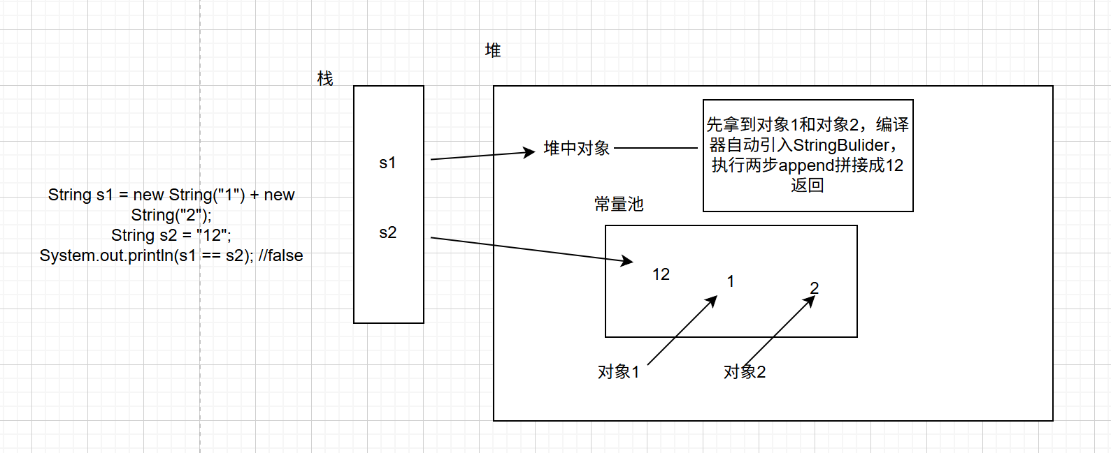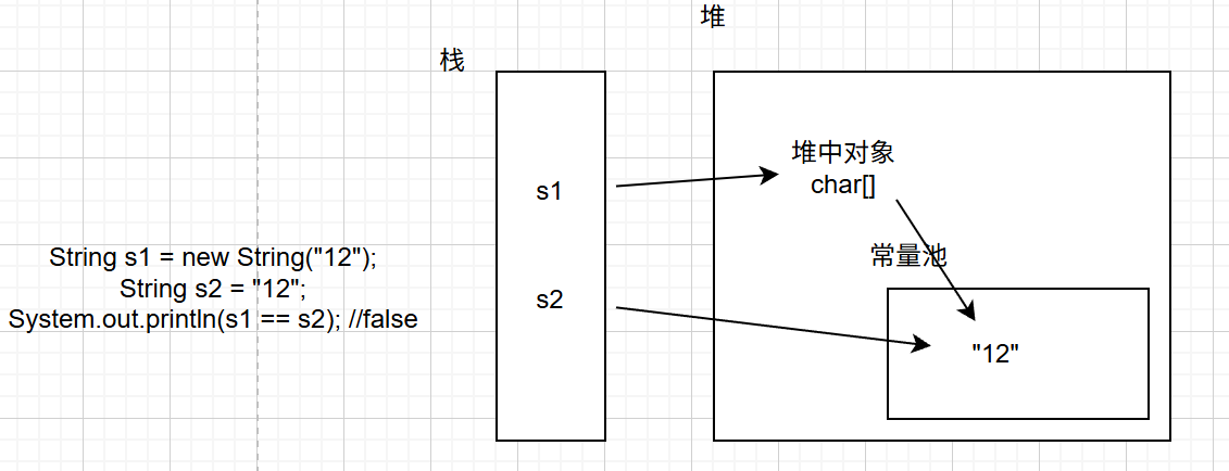 第二种情况是因为s1存储的是堆中对象的引用,所以比较的结果也自然是false