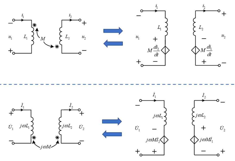 受控源模型只是将互感电压的部分,用一个受控源替代,而自感本身仍直接用电感表示,本质还是时域模型。
