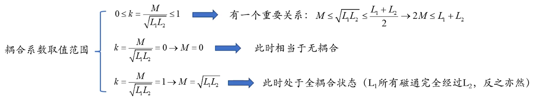 前面我们是直接将两个耦合电感之间的互感系数M给出计算的,但是实际在大学物理电磁学中,这个是与两侧电感相关的一个系数。耦合系数K表示了一对耦合电感的耦合紧密程度,越紧密的耦合,产生的互感参数M就越大。