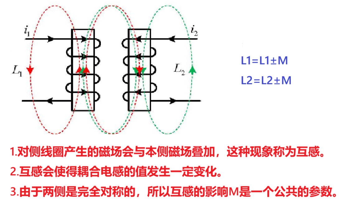 当两个线圈相互靠近时,一个线圈(原边)产生的磁场不仅会在自身产生自感,还会穿过另一个线圈(副边),在副边中产生感应电压,这种现象称为互感。