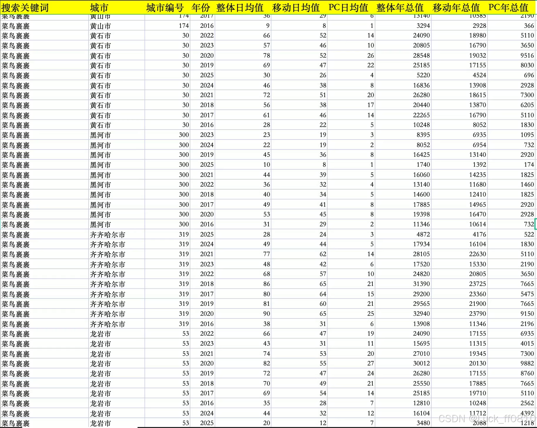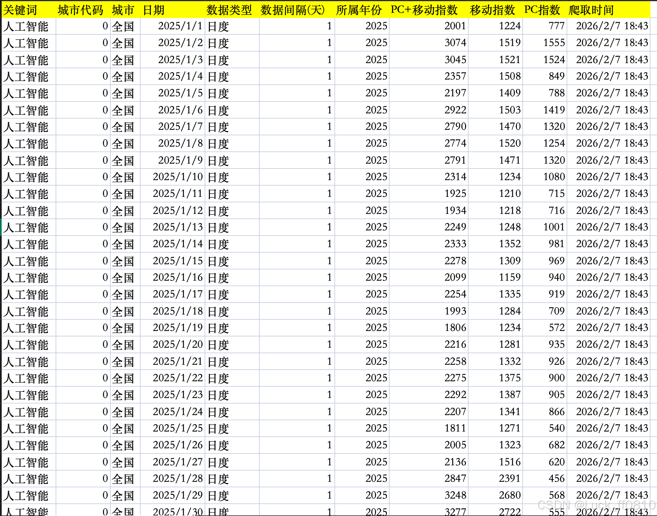 展示年度、日度等不同粒度的数据样例,辅助理解采集与分析能力。