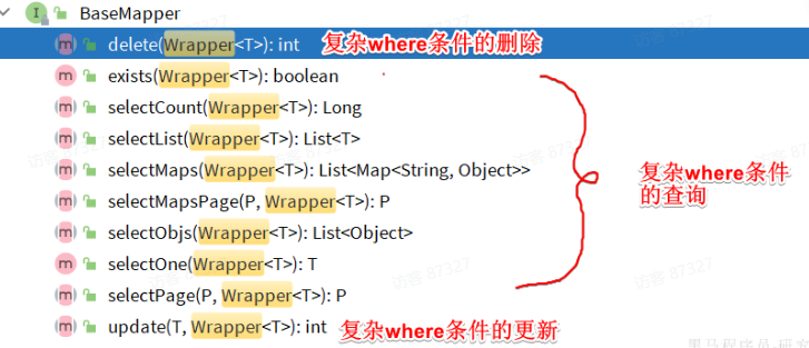 为了简化单表CRUD,MybatisPlus提供了一个基础的BaseMapper接口,其中已经实现了单表的CRUD: