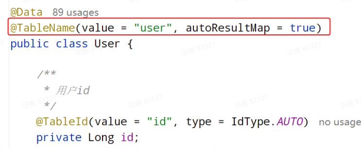 注意:一般情况下我们并不需要给字段添加@TableField注解,一些特殊情况除外: