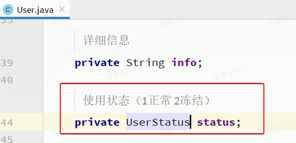 然后把User类中的status字段的Inteager类型改为UserStatus 类型: