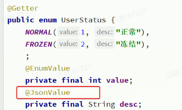 并且,在UserStatus枚举中通过@JsonValue注解标记JSON序列化时展示的字段: