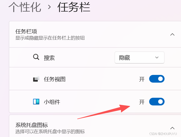 3、关闭任务栏小组件