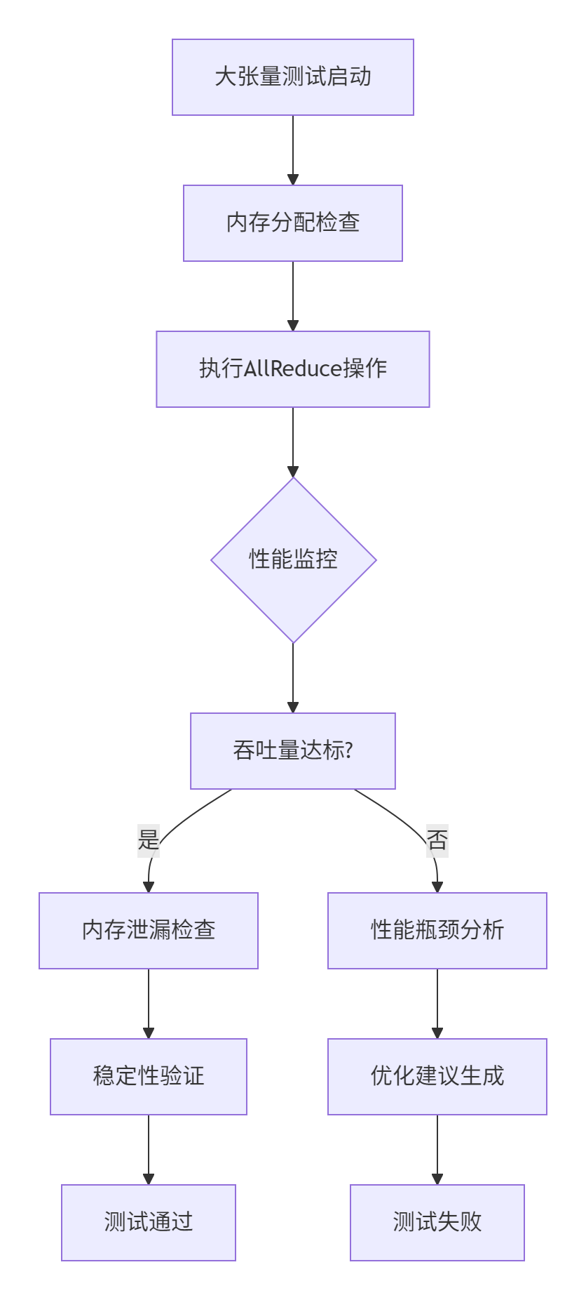大张量测试(通常指超过100MB的数据量)是检验系统极限能力的试金石。这里不仅要关注正确性,更要关注性能和资源使用情况。