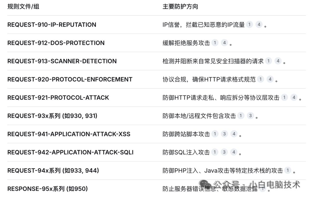 WAF规则:如果只是为了防刚爆出的那个路径穿越漏洞,勾选901、930、949三条核心规则足矣。其他规则看不懂?可以问问AI助手。
