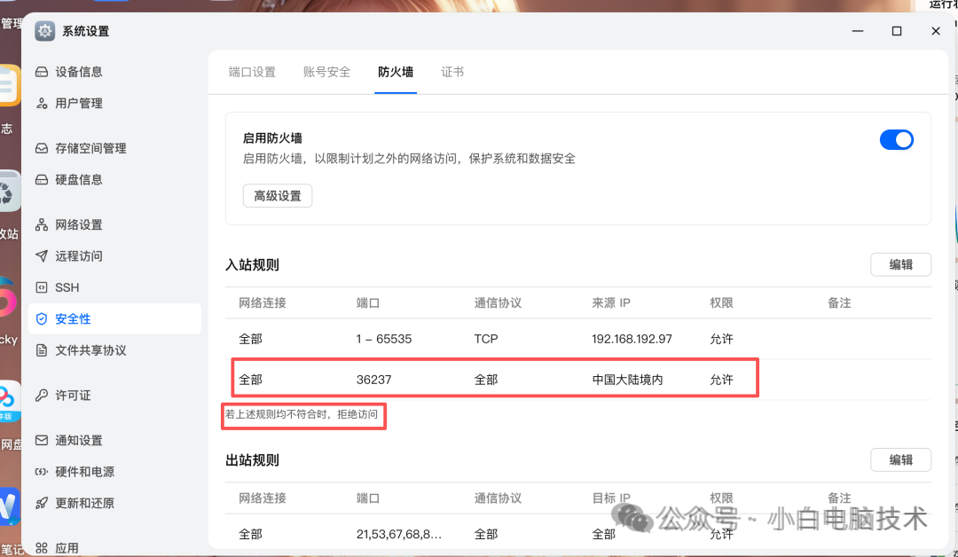 调整好飞牛防火墙(原则:能少开端口就少开!)