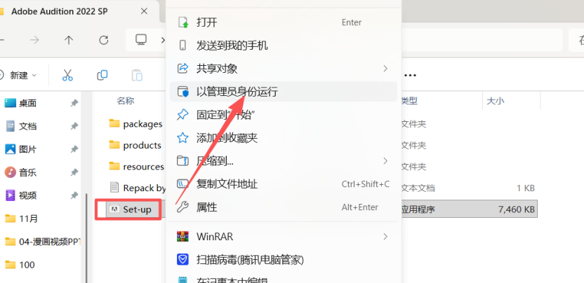 3.找到解压后的文件夹,找到.exe程序鼠标右键"以管理员方式安装"