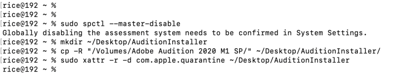 sudo xattr -r -d com.apple.quarantine ~/Desktop/AuditionInstaller