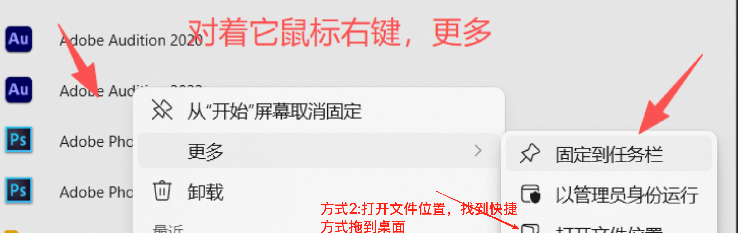 如果桌面没有创建快捷方式,去开始-更多,A打头的里面有,方式1:将其"固定到任务栏",方式2:打开文件位置,会弹出文件夹,找到快捷方式拖至桌面即可。