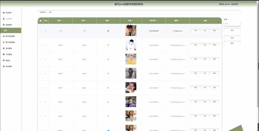 (1) 读者管理:管理员可以查看读者详细信息进行详情,修改和删除操作。