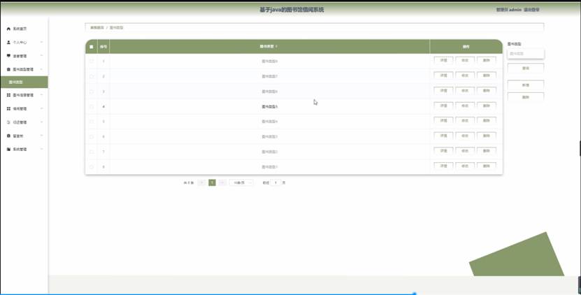 (2) 图书类型管理管理:管理员可以查看图书类型管理详细信息进行详情,修改和删除操作