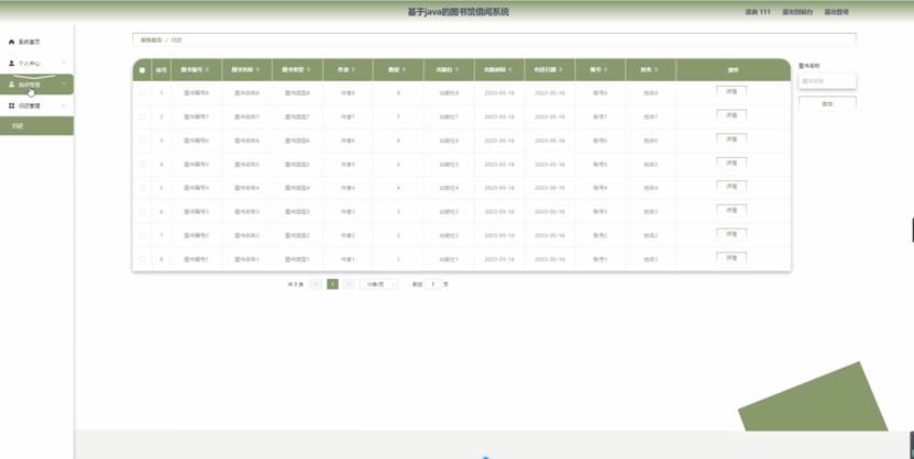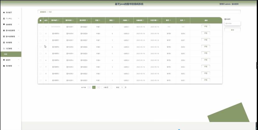 (4) 借阅管理:管理员可以借阅查看详细信息进行详情,修改和删除操作