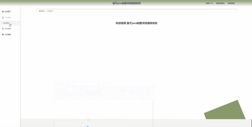 读者进入主页面,主要功能包括对系统首页、个人中心、借阅管理、归还管理等进行操作。读者主页面如图5-14所示: