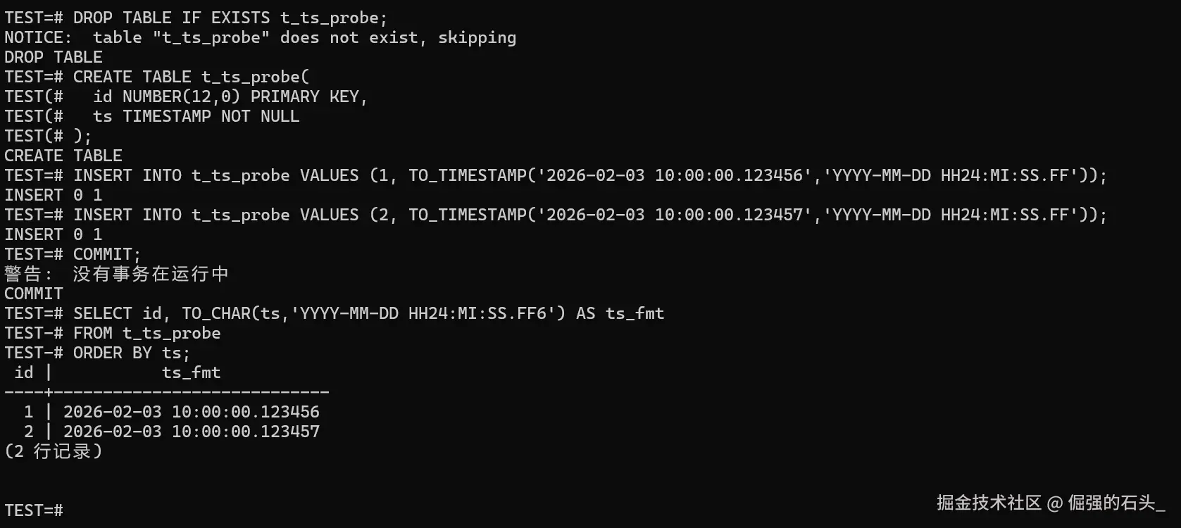 INSERT INTO t_ts_probe VALUES (2, TO_TIMESTAMP('2026-02-03 10:00:00.123457','YYYY-MM-DD HH24:MI:SS.FF'));