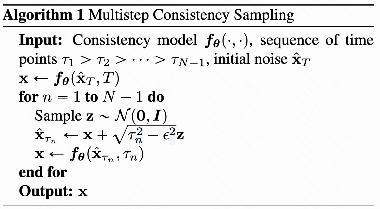 训练过程中不涉及离散时间步的设计,与采样器解耦,选择多步去噪时流程和前述的多步一致性采样流程一致。
