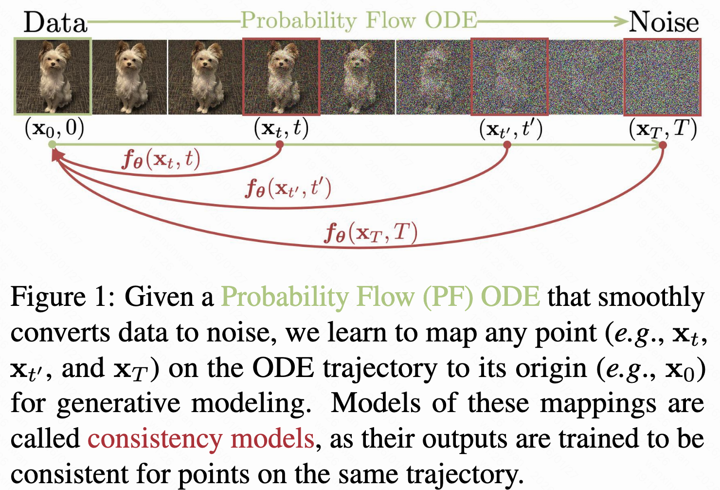 "一致性"就是输入轨迹上任何一点,模型都能得到原始数据,有了它就能从直接变成