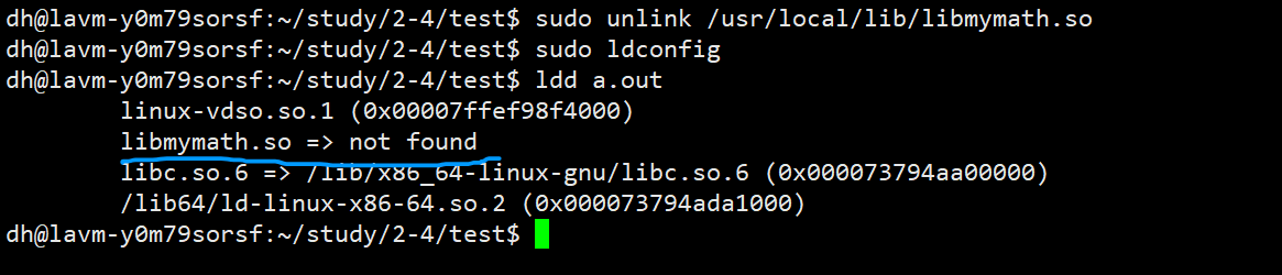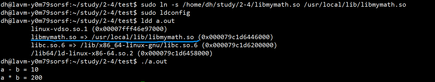 sudo ln -s /home/dh/study/2-4/libmymath.so /usr/local/lib/libmymath
