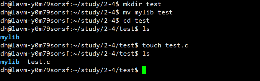 test.c(下面再写),然后把我们提供的动态库目录(mylib)移动到测试目录下(以此模拟用户下载并存放库文件的操作)。