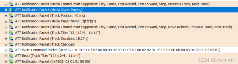 CIS流建立后,ATT Notification报文开始实时更新媒体状态: