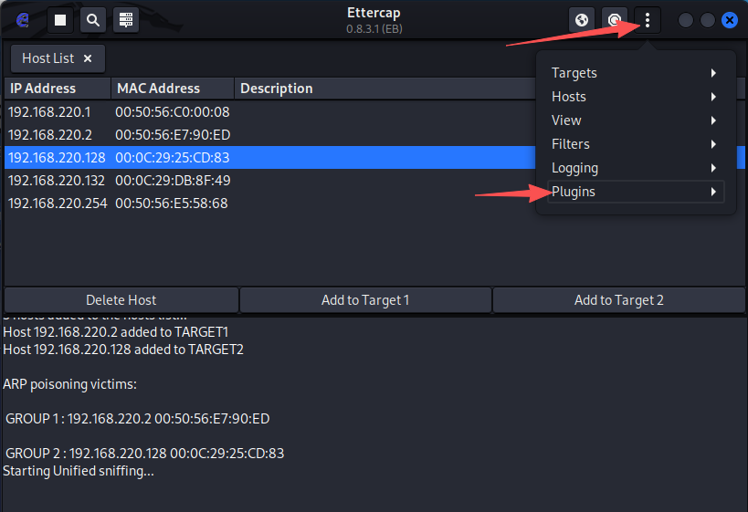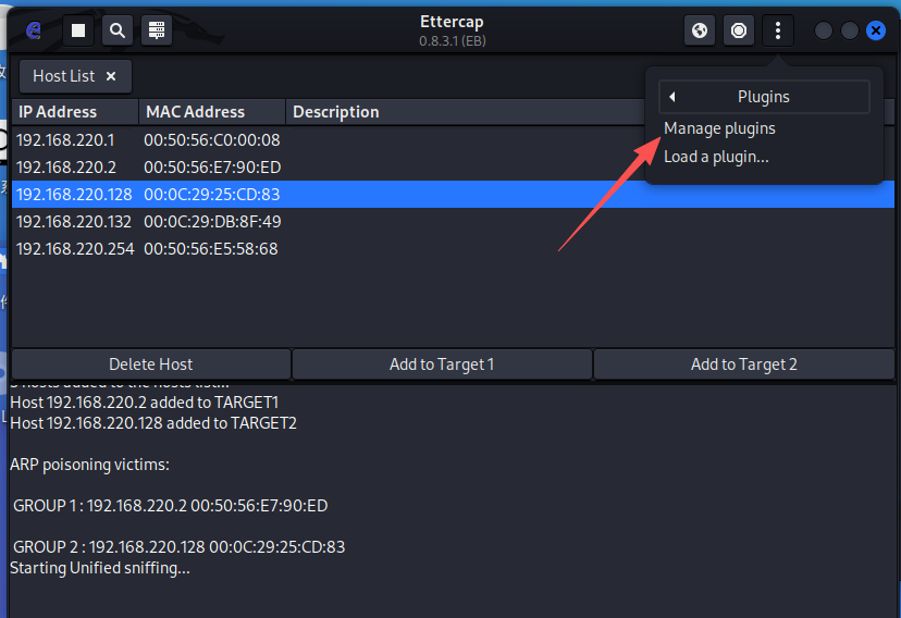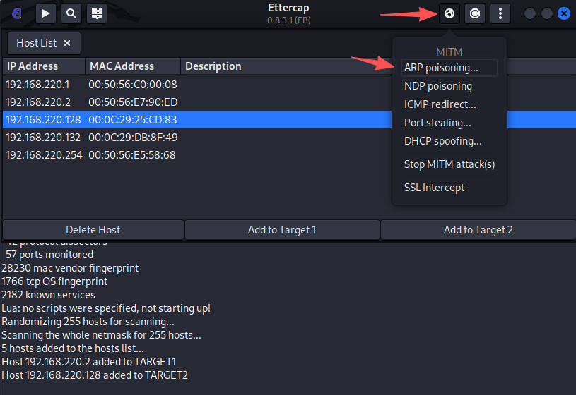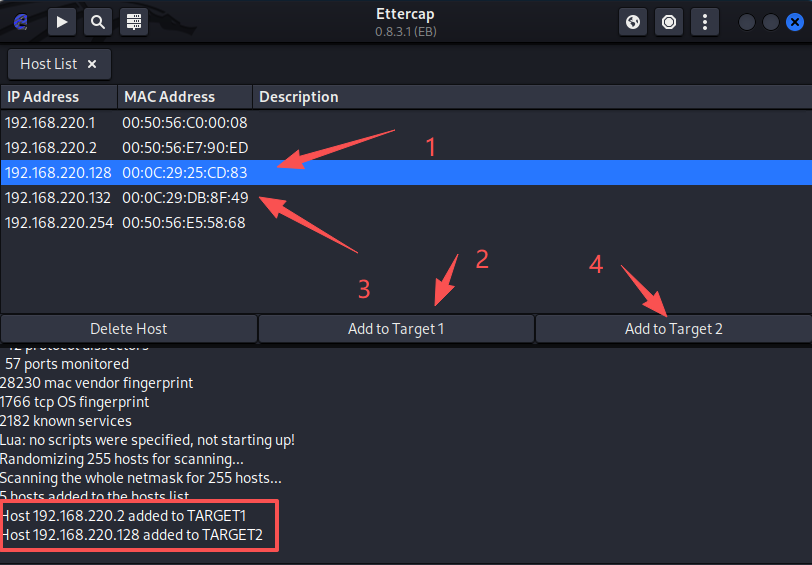 │ 2 │ 192.168.220.128 │ 00:0c:29:25:cd:83 │ │ Free │