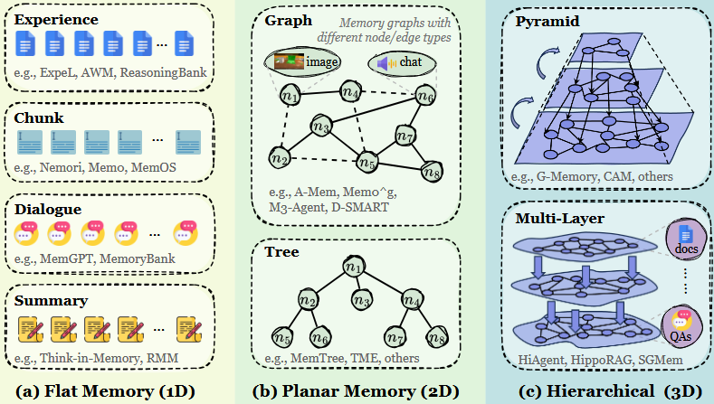 - 动态性层面:记忆形成、演化、检索的完整生命周期,支持自适应和自演化
