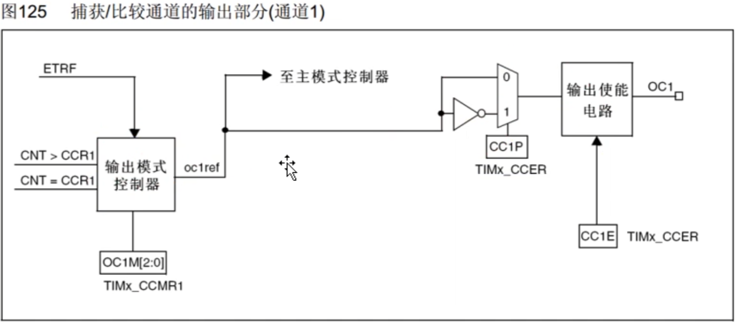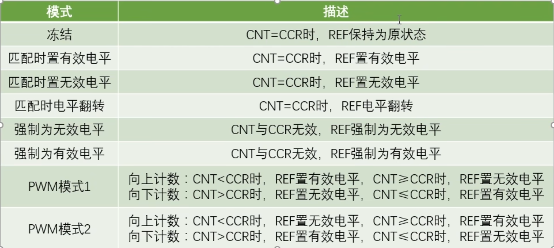 比较计数器和CCR寄存器的值,控制电平输出一定频率的波形,可以用于PWM